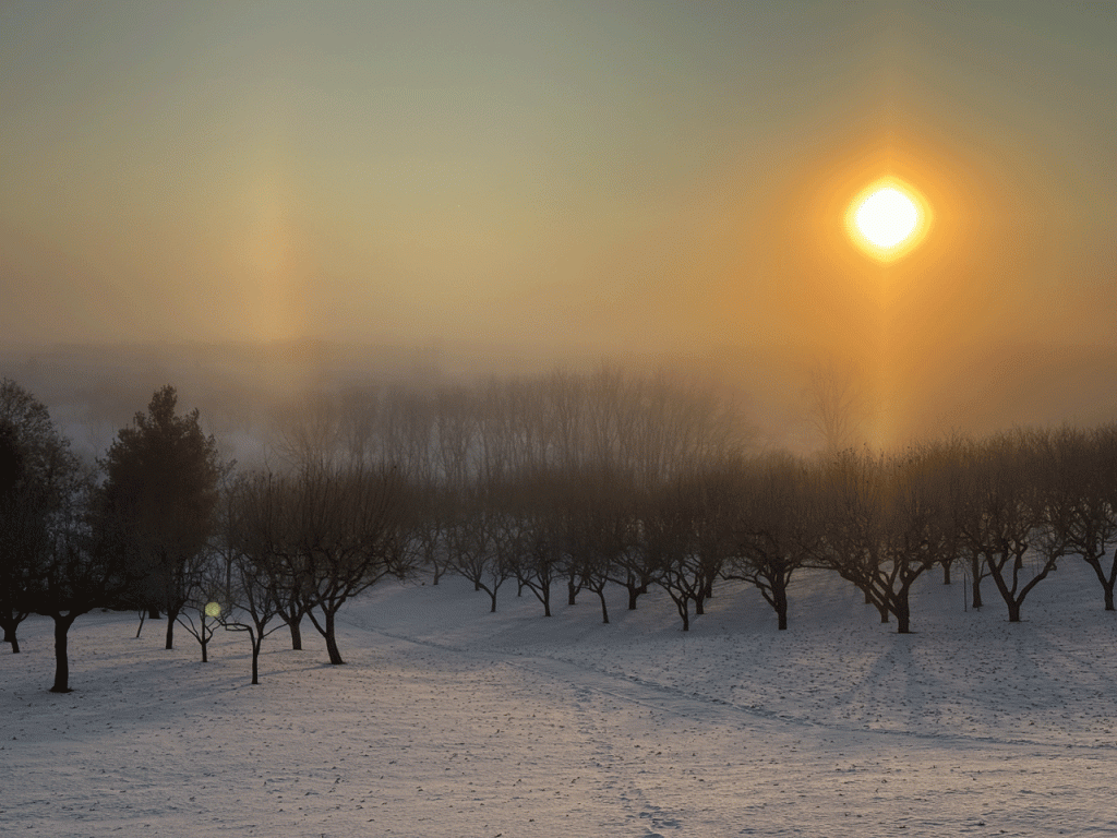 Winter in Iowa at Bluebell Orchard.